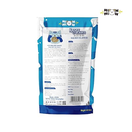 Taiyo Miow Miow Krispy Crackers Crunchy Cat Treats, 60g – Salmon Flavour | High-Protein Biscuits with Fiber, Vitamins & Minerals | Healthy Cat Snack for All Life Stages