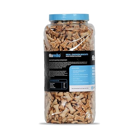 Filomilo – Real Chicken Dog Biscuits for Adult Dogs | Dog Biscuits for Puppy | Food for All Types of Dog's (1Kg - Milk &Egg Flavour)